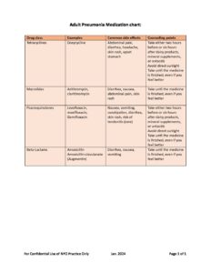 Medication Chart Adult Pneumonia